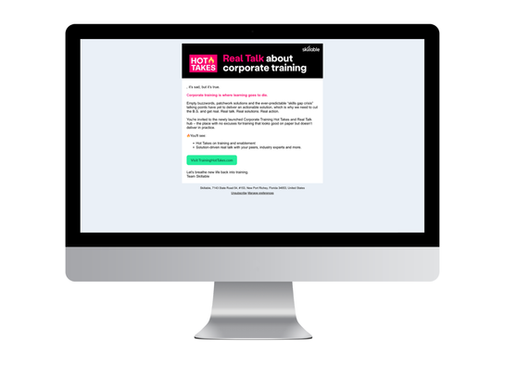 I oversaw and developed the creative look and feel for this campaign and executed across all marketing channels. This project required the visual identity to remain simple and adjacent to Skillable's branding while still being unique from other assets. My solution utilized Skillable's primary green, cream, and yellow brand colors with the introduction of hot pink, curating a warmer look and playing off the fire theme for Hot Takes. This visual system also included Skillable's primary typeface in both Regular and Bold, while intentionally leaving out the brand's serif font for a bolder design style.